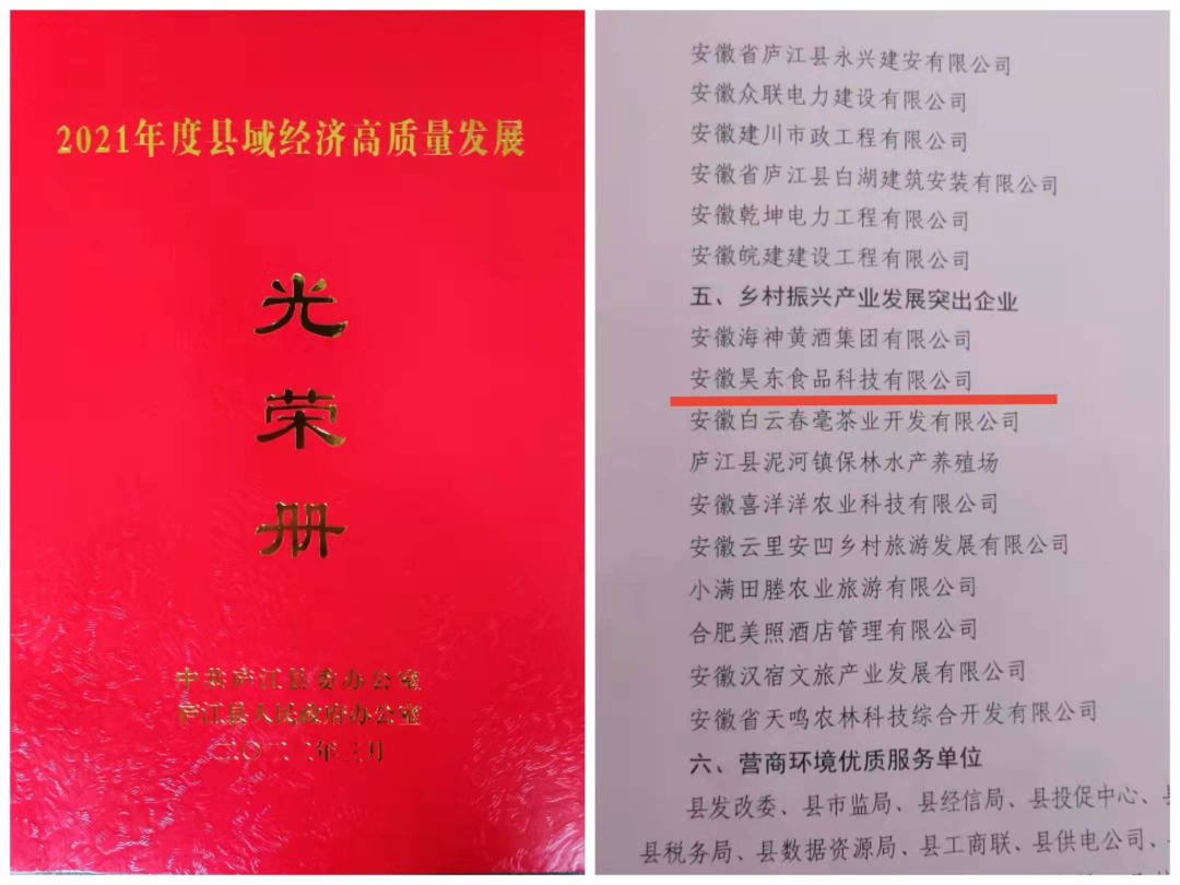 展望2022年,昊東食品將逐步擴(kuò)大生產(chǎn)規(guī)模,不斷加大研發(fā)費(fèi)用投入,盡最大努力,爭(zhēng)取為廬江的發(fā)展助力,以回饋這幾年來縣委縣政府各部門及臺(tái)創(chuàng)園管委會(huì)的關(guān)心幫助!安徽昊東食品科技有限公司始終秉持“堅(jiān)定信心、提振精神、真抓實(shí)干”的理念,獲得“2021年度鄉(xiāng)村振興產(chǎn)業(yè)發(fā)展突出企業(yè)”榮譽(yù)。