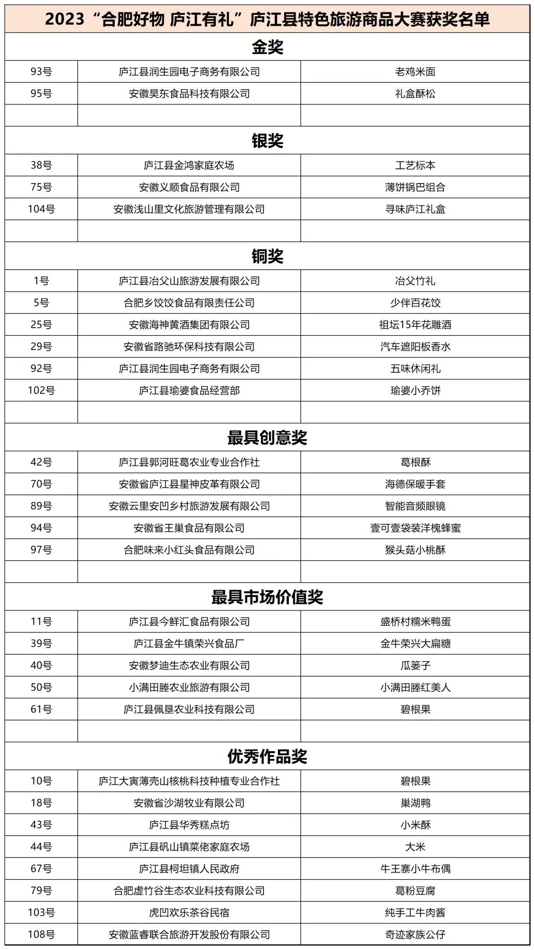 11月12日,由合肥市文化和旅游局、中共廬江縣委人才工作領導小組辦公室指導,廬江縣文化和旅游局主辦,廬江縣經濟和信息化局、廬江縣農業(yè)農村局、廬江縣商務局、廬江縣科技局協(xié)辦,廬江縣旅游協(xié)會承辦的“合肥好物 廬江有禮”2023合肥·廬江特色旅游商品大賽成功舉辦。